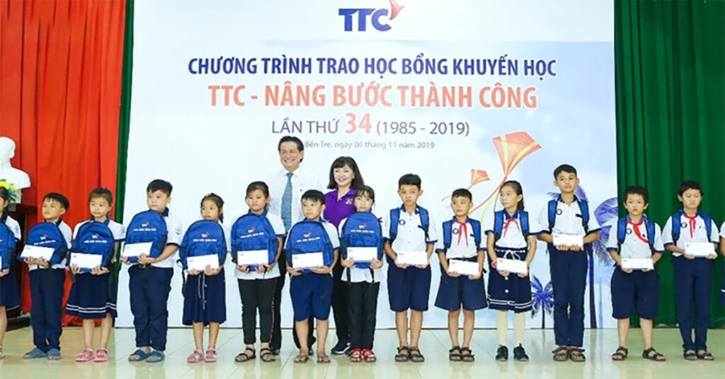 Ngày 22/11, 563 học sinh tại 10 trường thuộc huyện Mỏ Cày Nam và Mỏ Cày Bắc (Bến Tre) đã nhận học bổng từ Tập